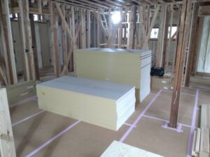 室内は、石膏ボードが搬入されこれから進んでいく様子がわかる問う感じですね(^^♪