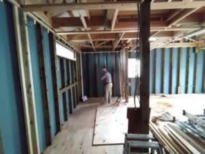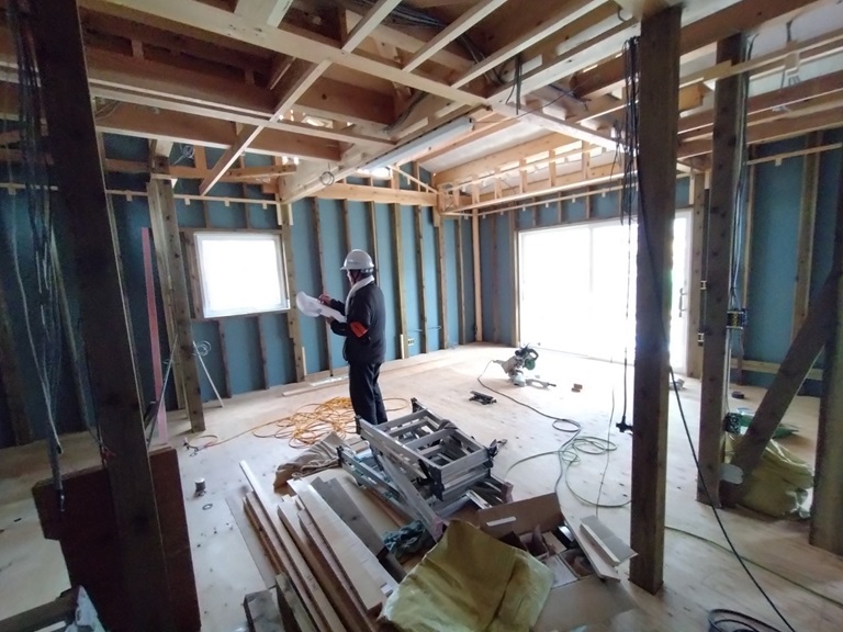 もう一件は、植野町のI様邸です。瑕疵保険の躯体検査を行いました。 法律で義務付けられている検査です。「 まもりすまい」の検査員の方に