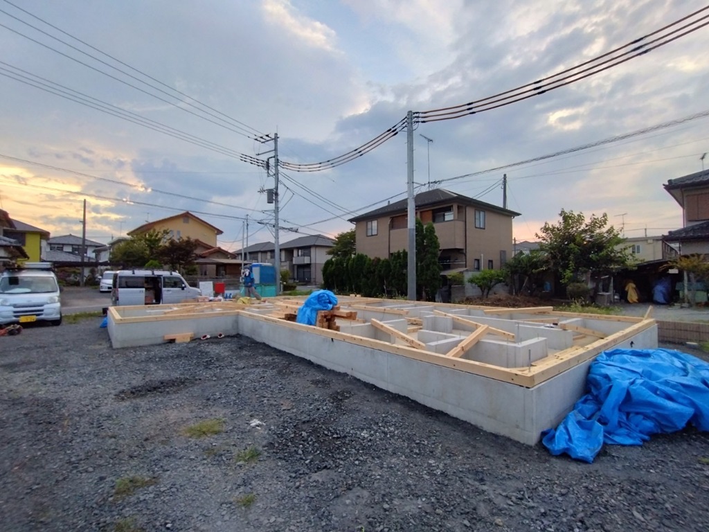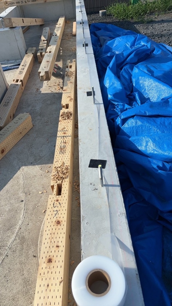 植下町のO様邸は、昨日土台敷を行いました。(少し残工事がありますが明日完了します) 虫返しを付けている写真です。