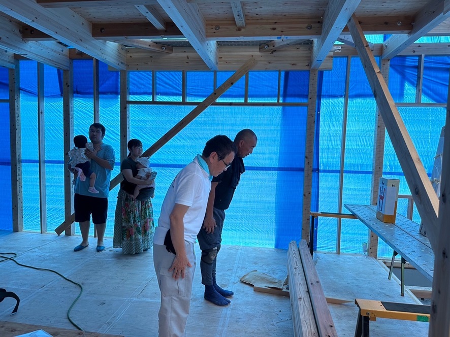 上棟式の後は、山中棟梁と、打合せをしてして解散となりました。 工程会議ですね~