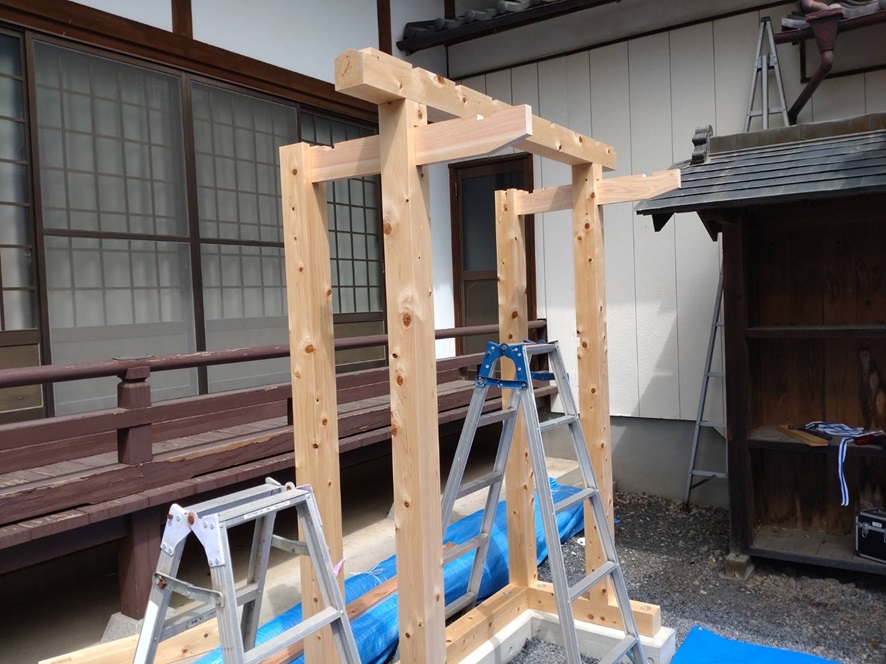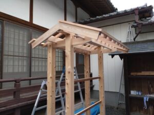 上羽田のN様邸のお寺の水桶 置き場を依頼されました。お盆前まででしたのでぎりぎり完成となりました。