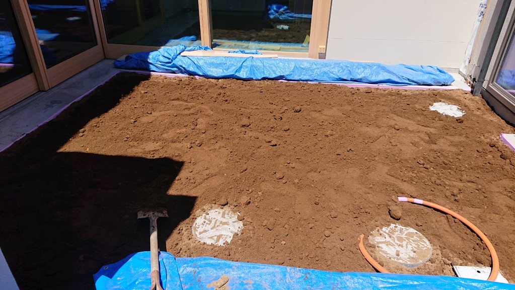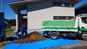 高萩町のK様邸で急遽 客土の依頼があり 永沢さんに土を依頼しました。 お休み中で職人がいない状況の為