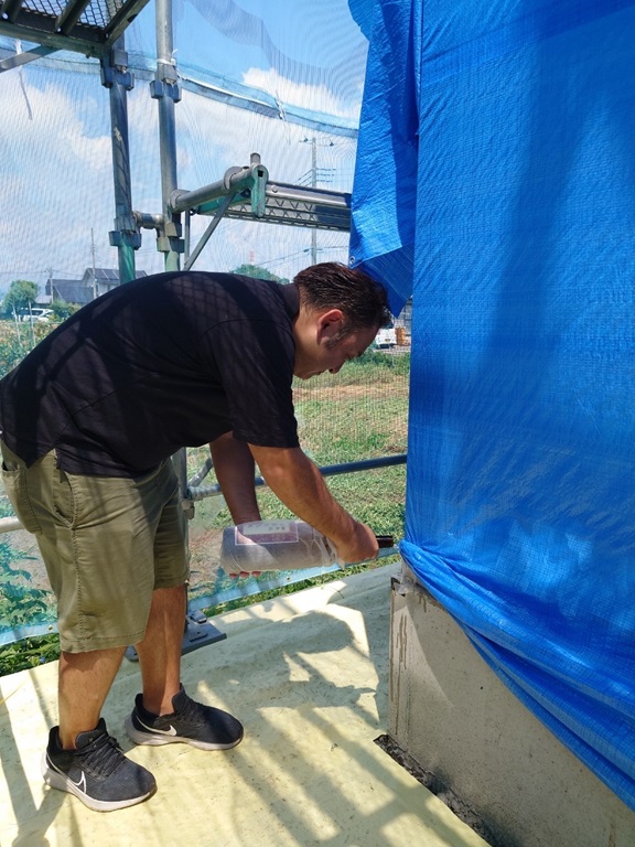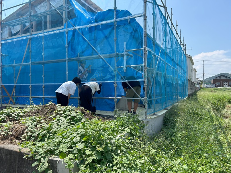 まずは、4隅のお清めから。 足場から入っていき~