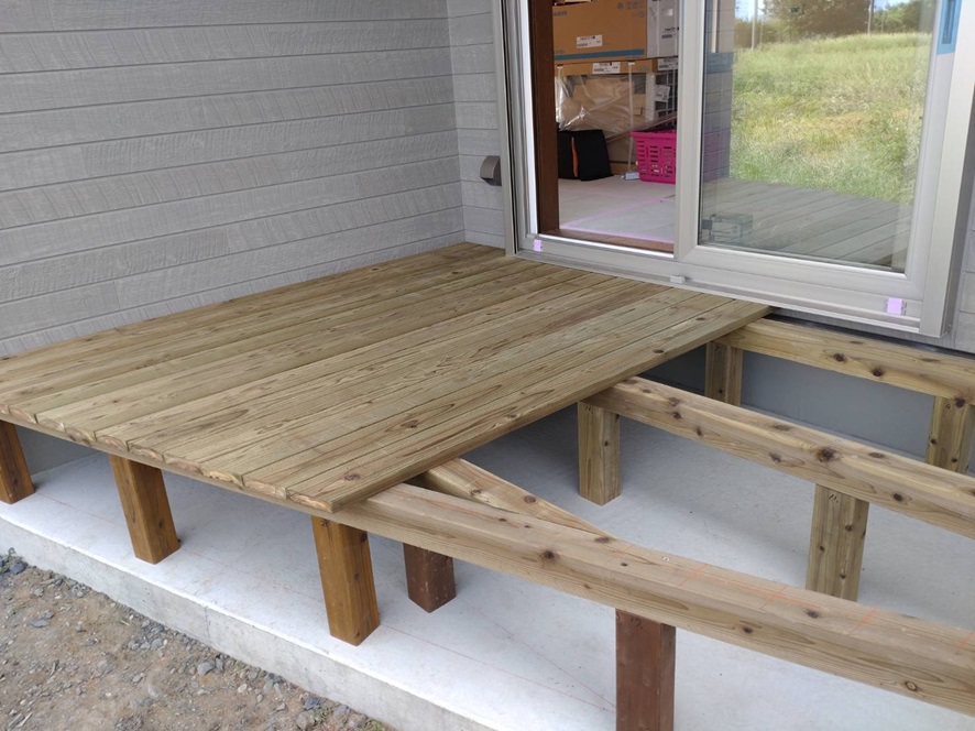 東にデッキあります。敷地が斜めなので腕の見せ所になりますがタツミー棟梁がやってくれました。(^^♪