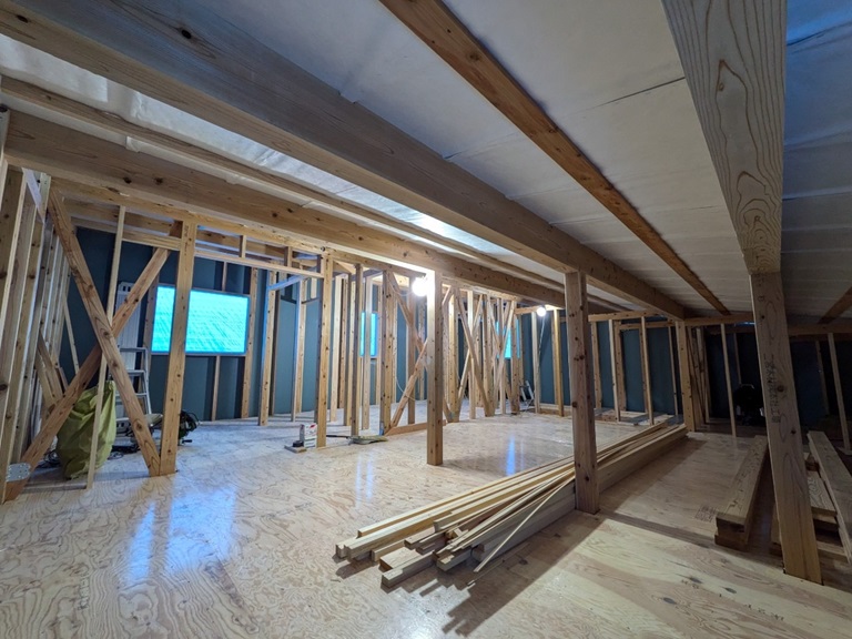 小屋裏の写真でうす。ウレタンの下地もできていて順調ですね(^^♪