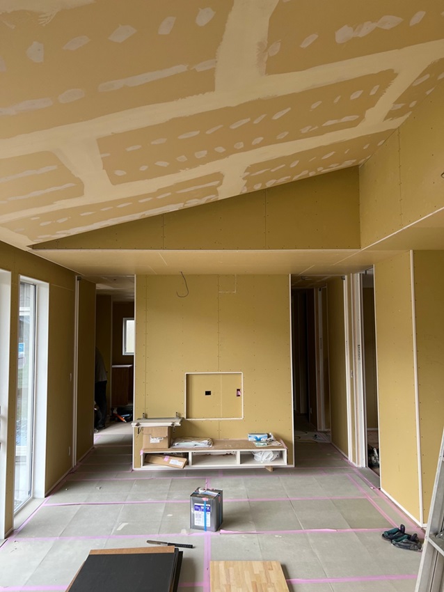 今日も雨でした。 2024年10月9日 最終更新日時 : 2024年10月9日 team-K風間 今日は、予報より長い時間雨になってしまいました。 今日は、2現場の報告をしますね こちらは、岩舟町のI様邸です。 昨日足場を解体した時に写真です。 今日は、内装屋さん入って予定通りやっていました。 天井のパテがやってある部分がセラミッククロスの部分です。 その他は、セラミック漆喰塗りになります。 順調です!(^^♪ こちらは、大平町のK様邸です。 「山中」棟梁頑張ってました。 こちらも 順調です (^^♪