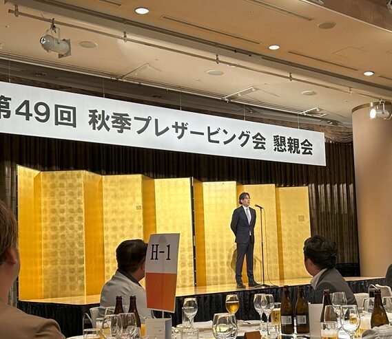 懇親会は、神谷社長の挨拶ではじまりました。 今回49回というこでで 来年は、50回記念といくことで万博見学も絡めて開催する予定だそうです!