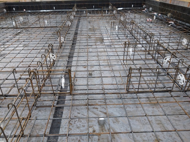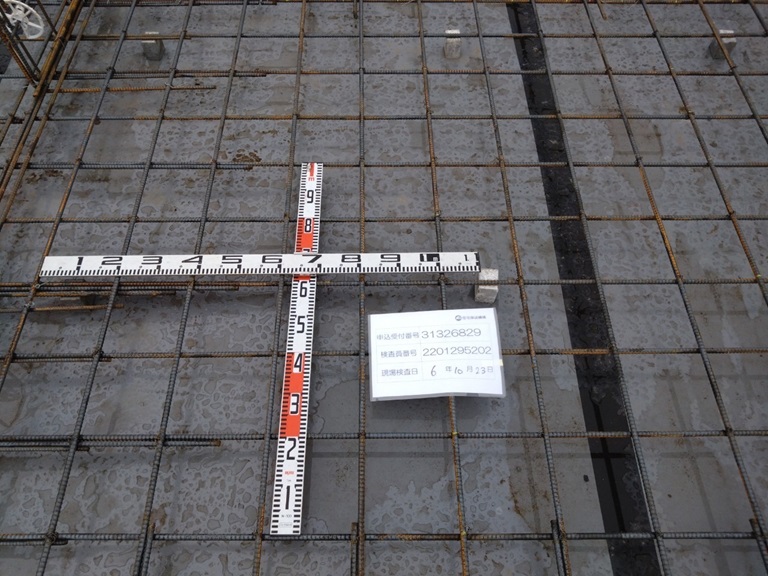 ベース筋の間隔等、鉄筋の寸法チェックを行います。