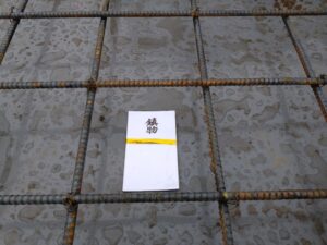 地鎮祭の時に鎮め物も このように入れます。 ポリを破いて下に入れる会社もあるようですが