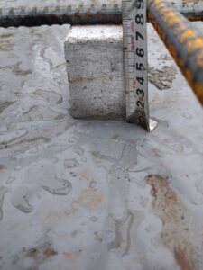 建ててからでは直せない「かぶり寸法」を確認します。サイコロ70mmOKです!(基準60mm以上)