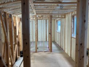 室内は、ウレタン工事が終わり、床が張られてします。気密測定の絶好のチャンスです!