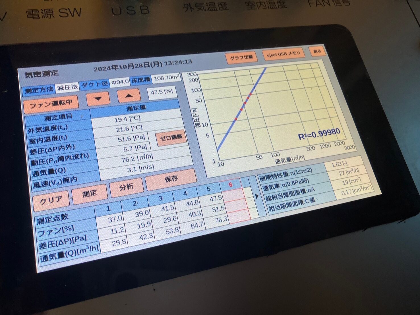 今回、C値=0.17 という良い結果がでました。断熱施工の気密は、いつも同じですので開口部(引違が少ない等)の内容により