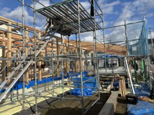 今日は、寒くなりしたが、雨が降らないうちに無事建て方ができました。