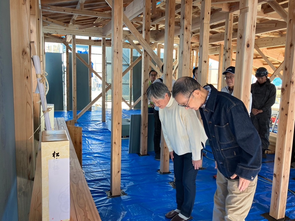 今日は、風が強い一日でしたが、無事上棟式を行いことができました。