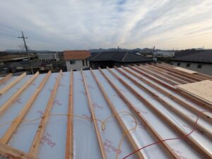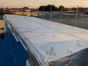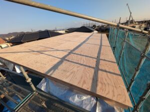 上棟式は、今日行いましたが、建て方は、3日に行わていますので野地は、完了しています。