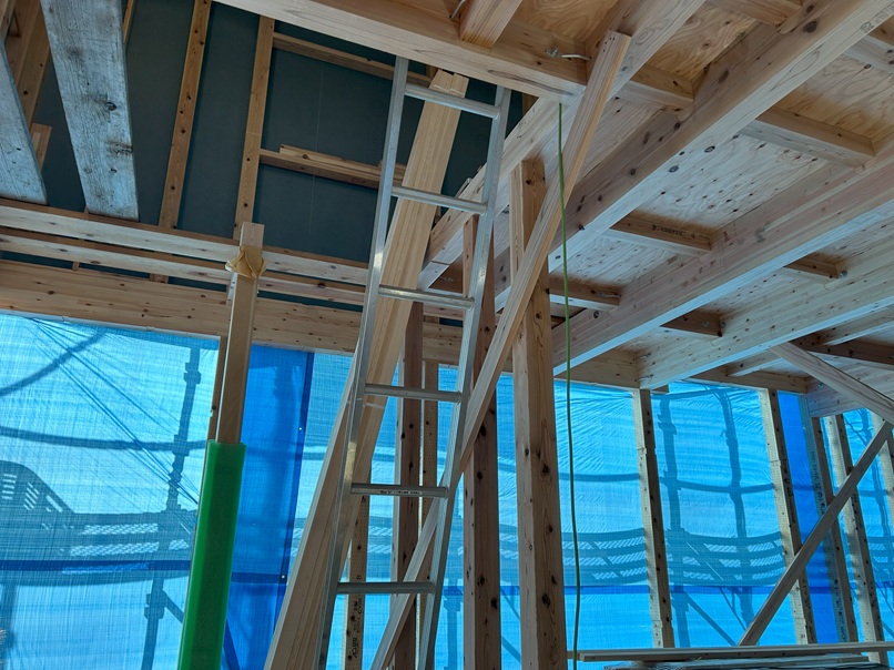 上棟式は、今日行いましたが、建て方は、3日に行わていますので野地は、完了しています。