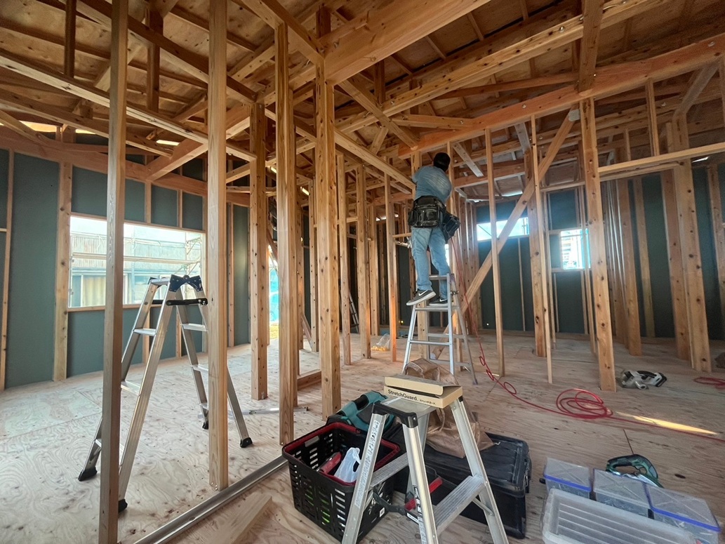 急に真冬が近づいてきました。 2024年12月10日 最終更新日時 : 2024年12月10日 team-K風間 今朝は、氷点下になったところが県内でもあったようです。 今日は、2現場の報告をします。 こちらは、足利市のN様邸です。 外観の格好がいい感じですね(^^♪ ポーチ兼用車庫部分も広々ですね。 雲が冬の雲ですね 室内は、電気屋さんと、大工さんが入って仕事をしていました。 順調ですね こちらは、太田市のA様邸です。 現場も最終段階になってきました。 玄関ポーチから玄関土間タイルがいい雰囲気になりました。 室内もいい感じで仕上がりました。 15日にいよいよ引き渡しになります。(^^♪