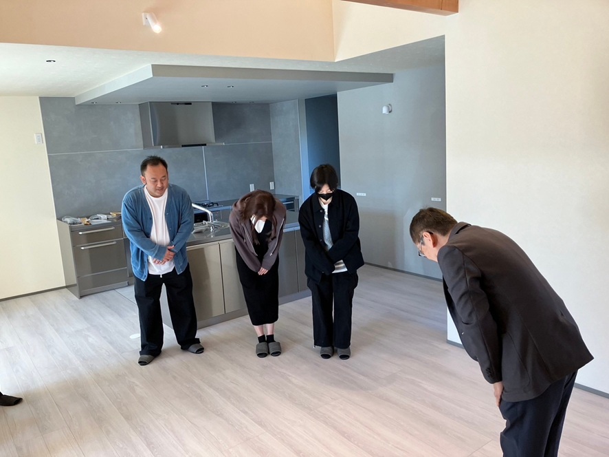 引渡し式では、お客様の家造りの感想や、スタッフの感想も述べよい引渡し式が終了できました。