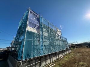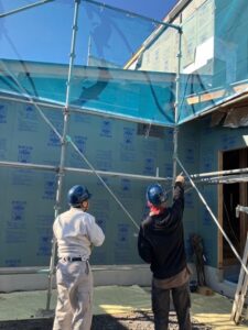 鉄筋の段階での動画、土台敷の動画に続き3回目の動画撮影になります。 外部にEXハイパーを施工ができたようです。