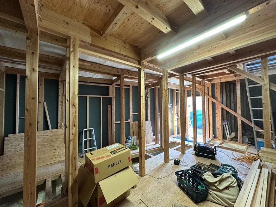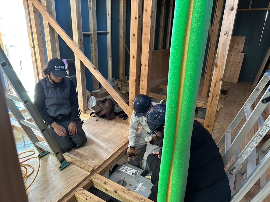 1階での熱交換換気「澄家」の説明は、動画ではUPしませんが、「イケメン大工カワマー」棟梁も真剣に聞いてくれました。