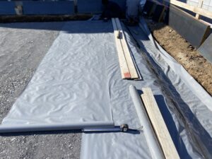 立ち上がりは、枠に打ち込みですが、折り返し部分は、土台を敷く前に敷きます。