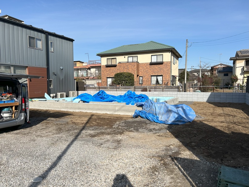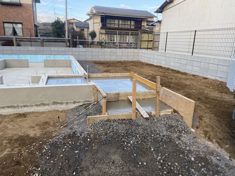 立ち上がりコンクリートまで打って~タイル下地コンクリートを打ったところです。