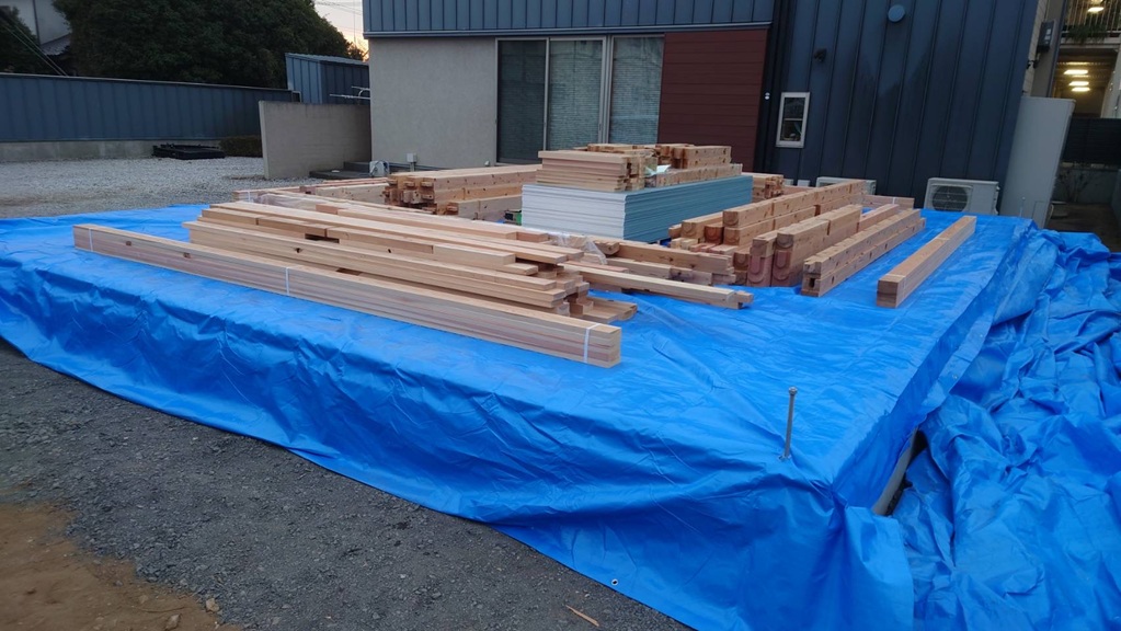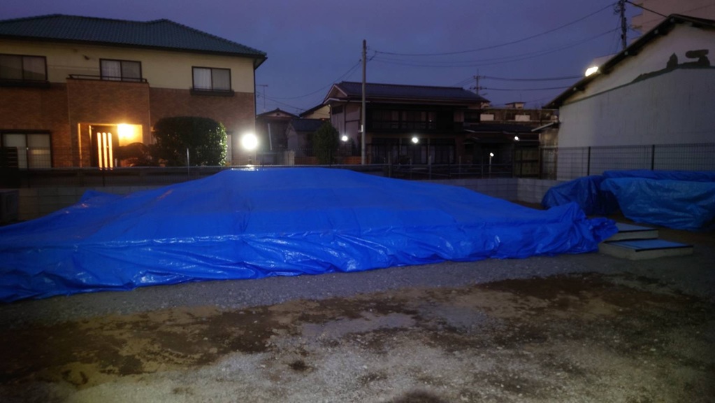最終ブルーシートもかけバッチリです! 明日は、足場架けで、27日は、建て方になります。 楽しみですね(^^♪