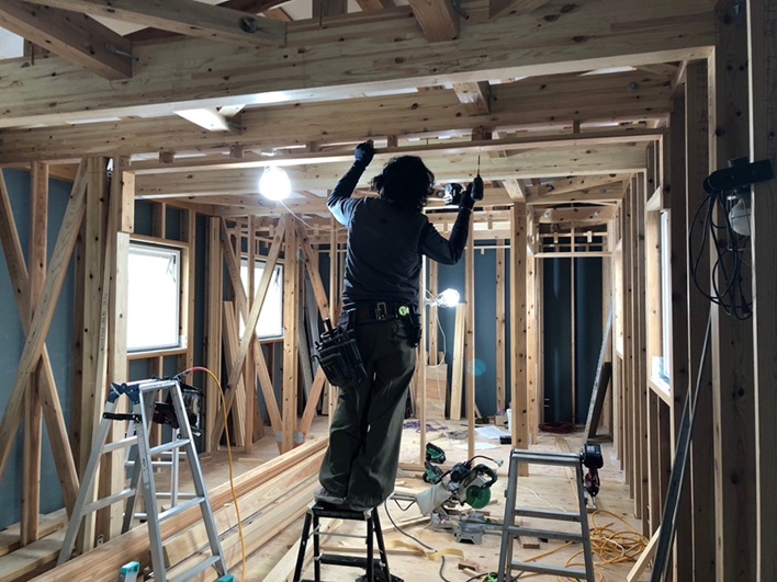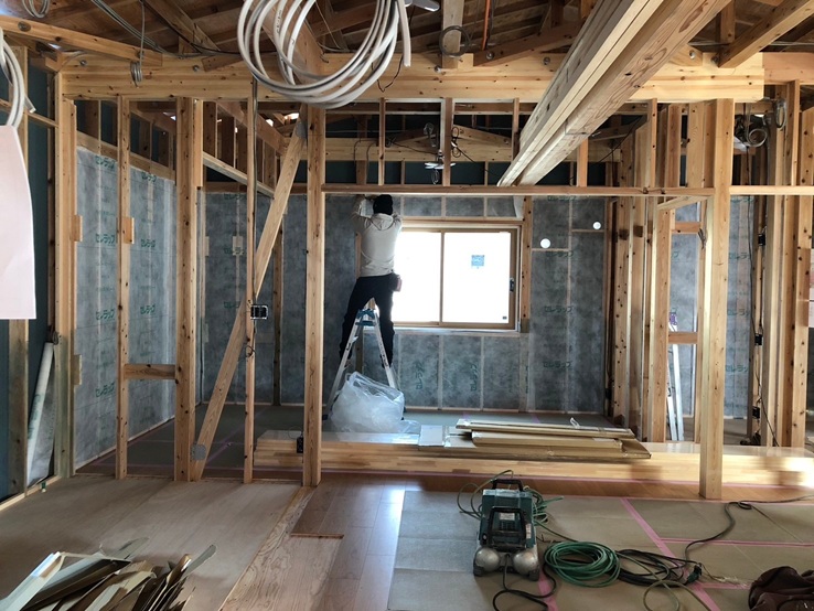 木工事は、「横塚棟梁」順調に進み~ 断熱工事の段取りがはじまりました。