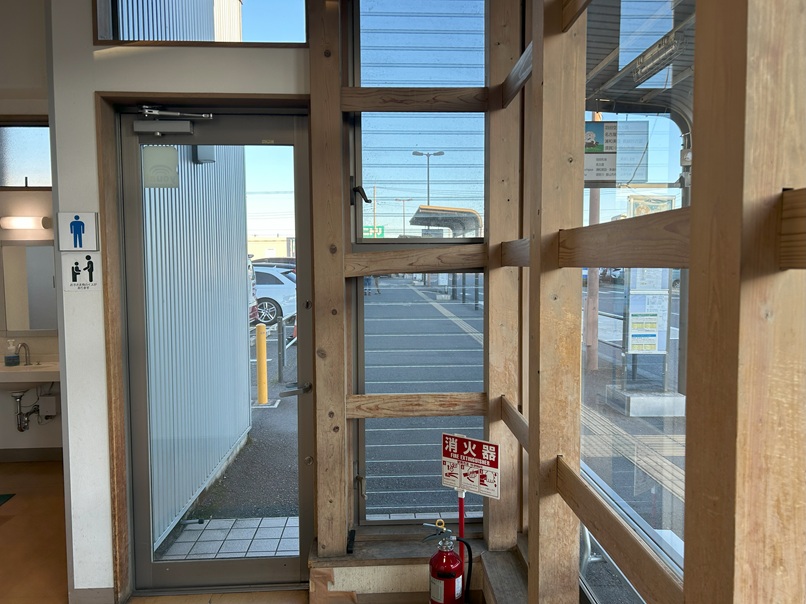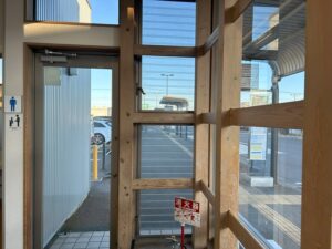 高速バスの待合に入ると、貫が斜め(横の桟のような材料)になって気になり~