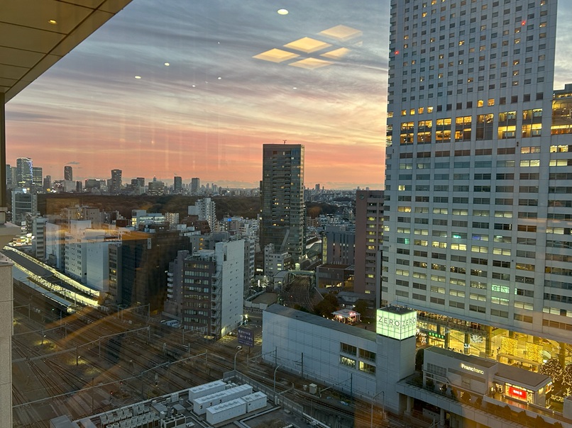 新宿に戻り 「高島屋」で夕日を見ながらお蕎麦を頂きました。 またまた贅沢ですね( 一一)