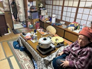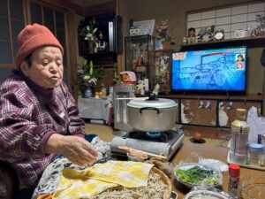 17時頃 「サクそば」食べに邪魔しました。手前がおふくろ、奥にいるのが姉です。2人で工務店に住んでいます。