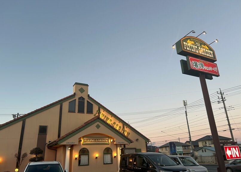 今日の夕方は、正月休み気分になるようにと、夕方「フライングガーデン」で爆弾ハンバーグを食べに行ってきました。