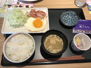 定番の「ベーコンエッグ朝食」を頂きました。最近は、これ以外に・・・
