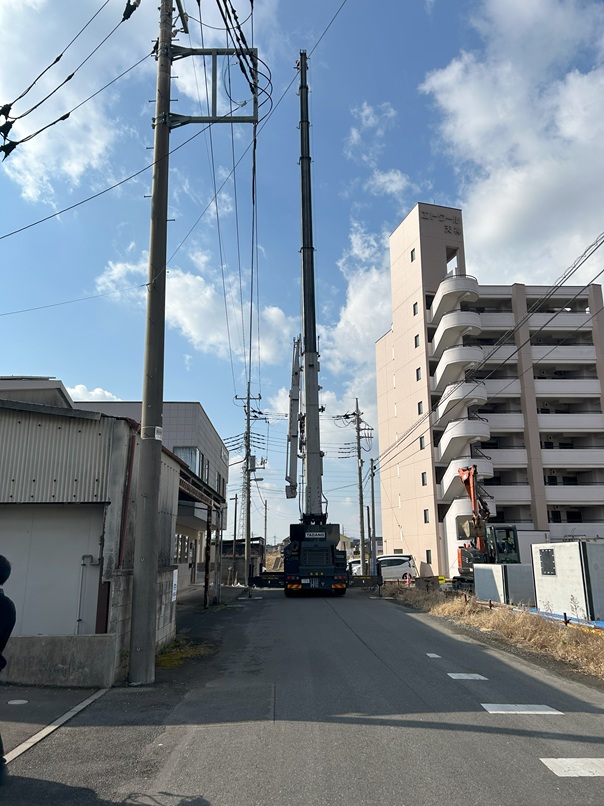 大きなレッカー車がありました。右のあるコンクリートを移動しているのかと思いますが何してるのかは