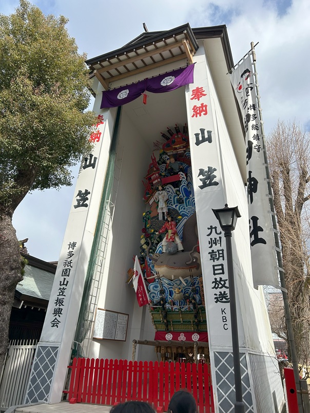 今日は、山笠祭りで山車が納めてある場所の櫛田神社でお参りをして戻ってきました。