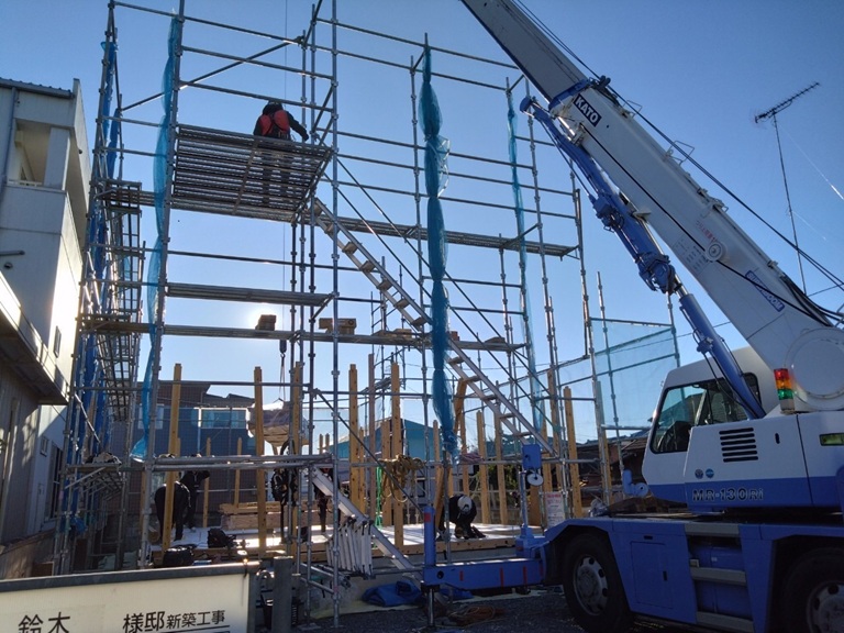 今日は、足利市宮北町のS様邸の建て方を行いました。