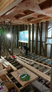 外部の下地が完了して室内の床の下地を「バッチジー親方」がやっています。
