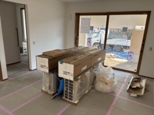 室内は、エアコンの器具を付けると終わりのところまで進んでいます。 引渡しもうすですね(^^♪