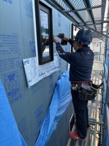真面目そうな職人がサッシを止めていますね! 「ナイスヌッキー!」