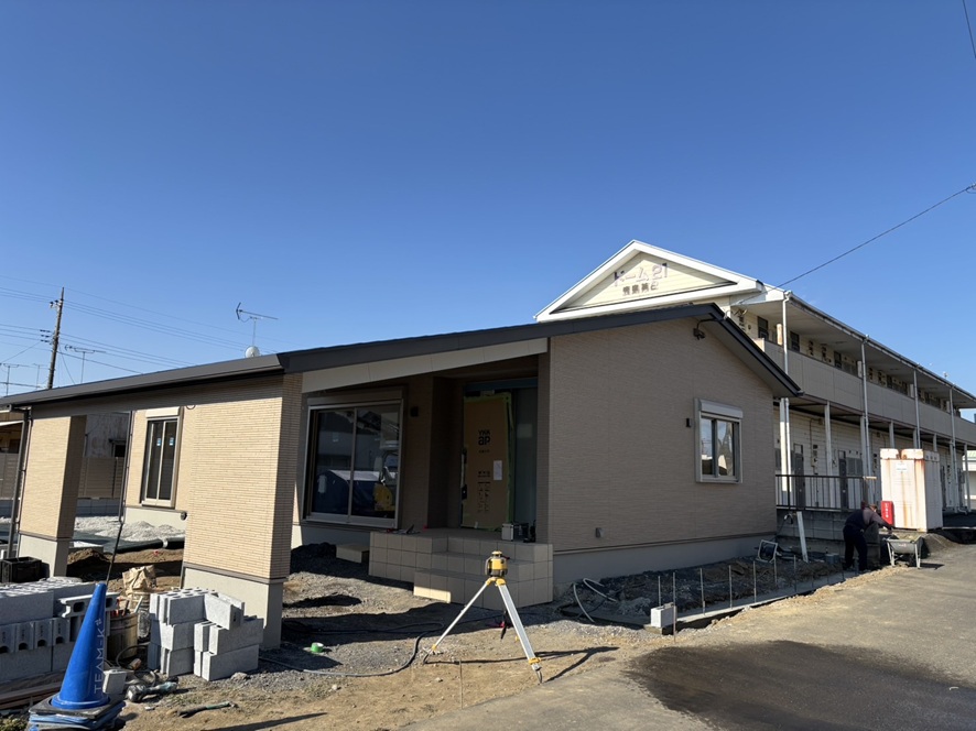 こちらは、足利市鹿島町のN様邸です。外構工事の仕上げ工事をやっています。
