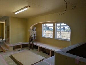 こちらは、小中町のM様邸です。 木工事が終了して 内装工事 (ふかだいさお)さん 入りました。 順調な段取りですね