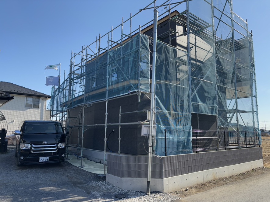 こちらは、小中町のM様邸です。外壁がかなり進みました。 今日は、「赤ちゃん」「ヒロ君」コンビで現場寸法確認に脚を運びました。