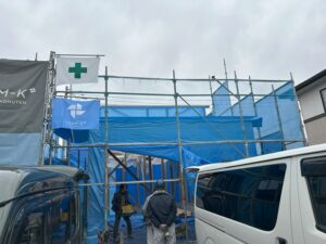 こちらは、小中町のM様邸です。 今日現場へ午後入ってきました。今日の午前中足場解体完了しました。