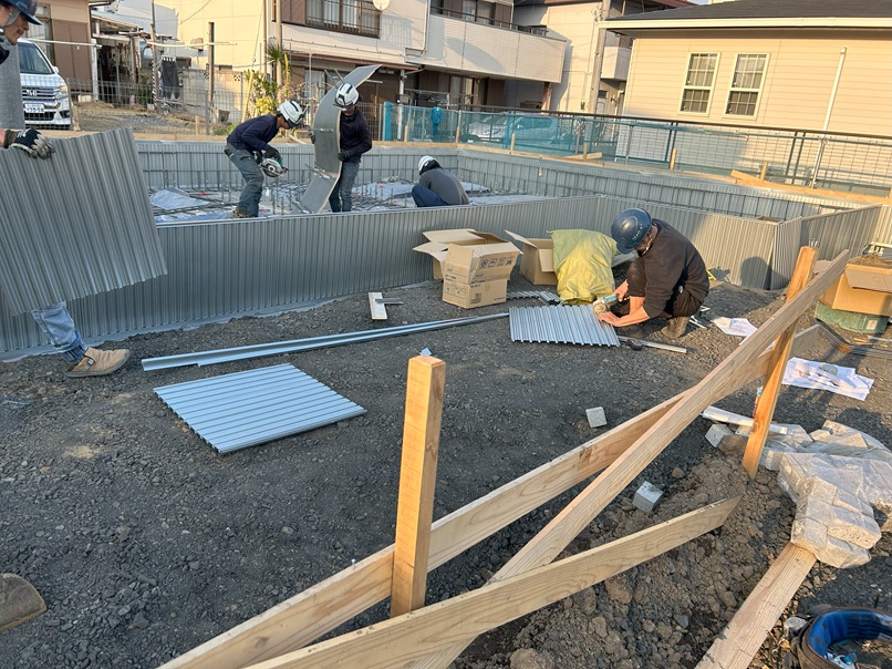 免震材の上にターミダンシートを敷いてこのシートでシロアリ20年保証を実行できます。 22.23日ではじめ予定していましが