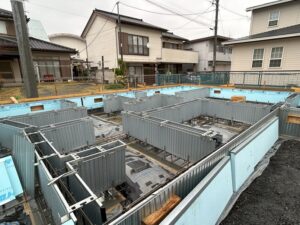 1週間延期させて頂きました免震基礎工事もだいぶ形になってきました。