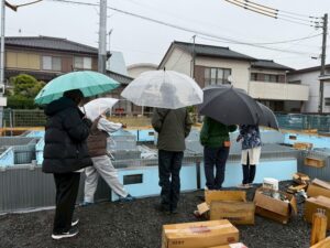 雨の中 免震基礎見学会終了しました。 打合せもありがとうございました。m(__)m