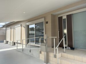 今日は、足利市鹿島町のN様邸のお引渡しを行いました。 玄関までスロープで上がり、玄関からホールの段さは、ない設計です。