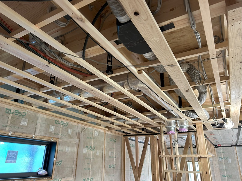S様邸は、同時給排ダクトや、ルフロ400の換気で排気ダクトもありましたがうまく天井内で納まりました。(^^♪