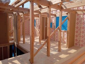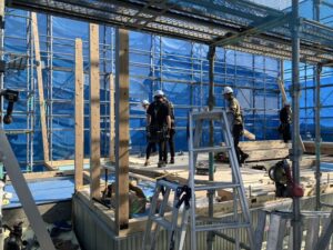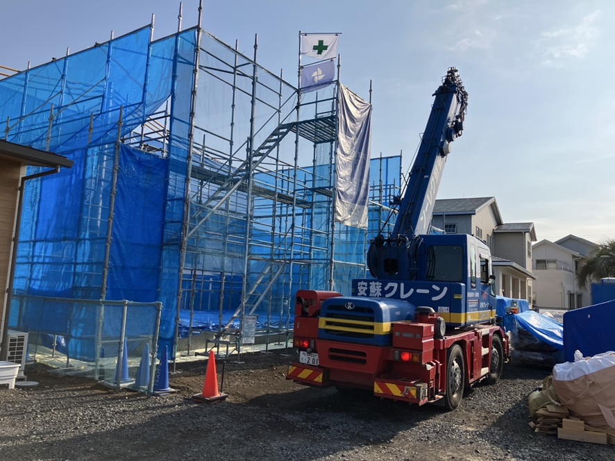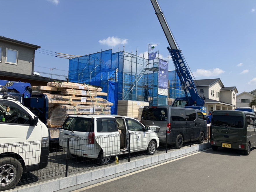 今日は、植下モデルの建て方を行いました。 朝7時半頃からレッカー社待機していよいよ