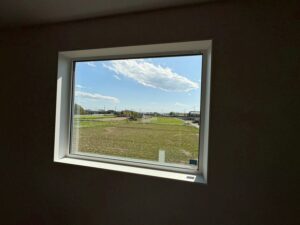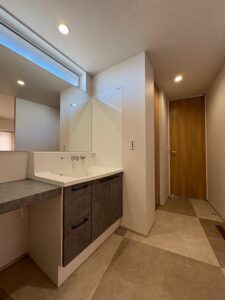 こちらは、19日に引き渡し予定の小中町のM様邸です。室内も完成しています。 洗面から玄関を撮った写真です。